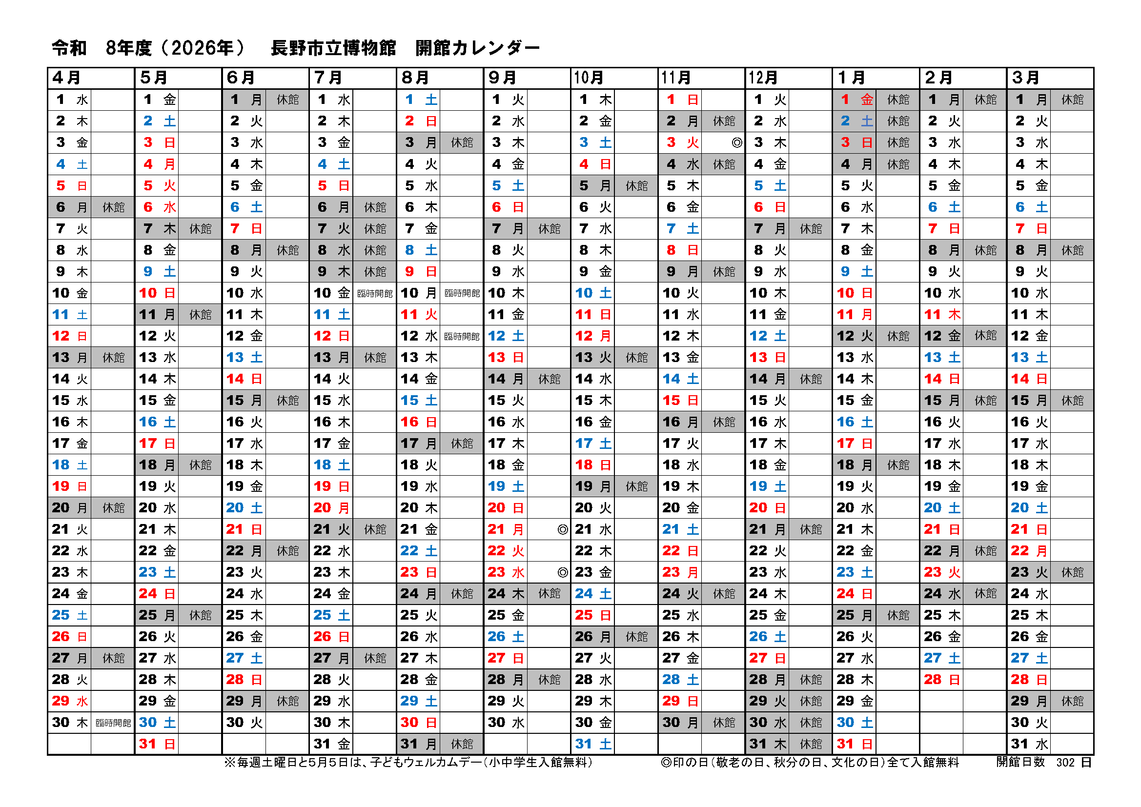 令和8年度の開館スケジュール (クリックでpdfが開きます(178KB))