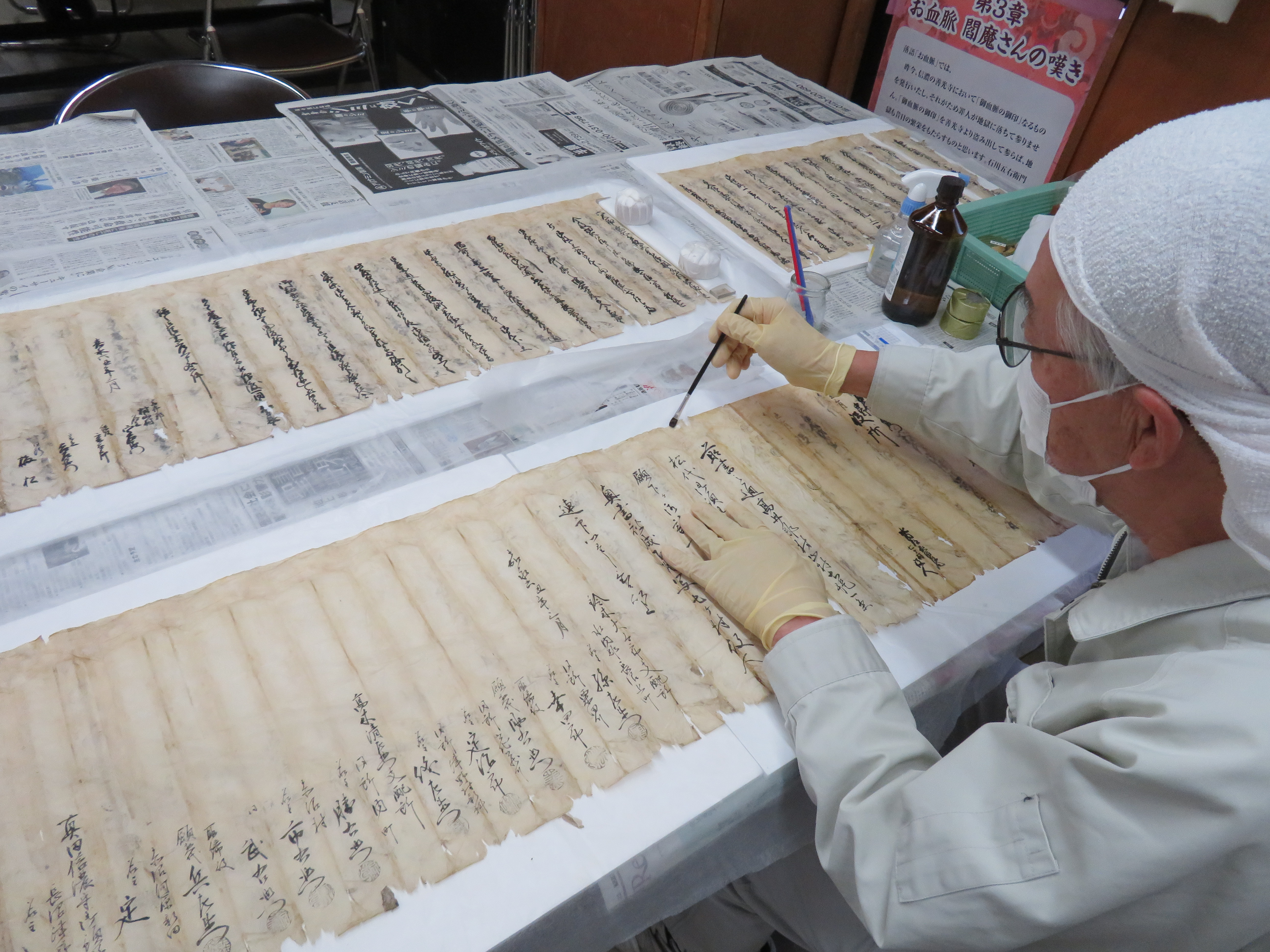 | △被災古文書の応急処置 |