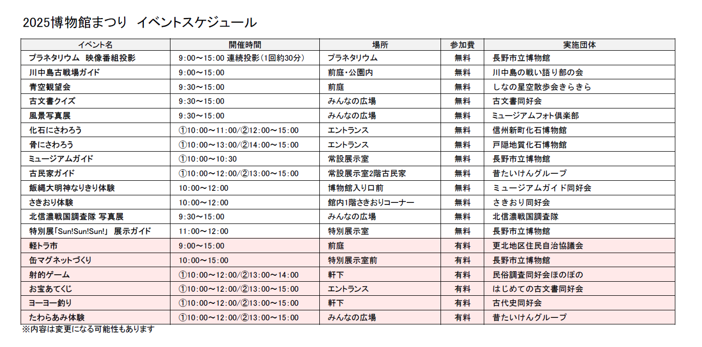 雨天実施、天候により内容が変更となる場合があります。