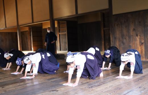 1月13日(月曜日)、国の史跡に指定されている松代藩旧文武学校で、松代地区育成会剣道クラブなどの子どもたちが、文化財保護活動として清掃活動・初稽古を行いました。この活動は、子どもたちが地元に残る貴重な文化財を大切に守り、後世に伝えるために毎年行われているもので、子どもたちは文武学校の床を磨き上げ、文化財保護の宣誓をした後、初稽古に臨みました。