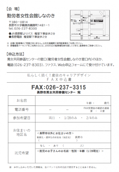 電話番号:026-237-8303、ファックス番号:026-237-3315