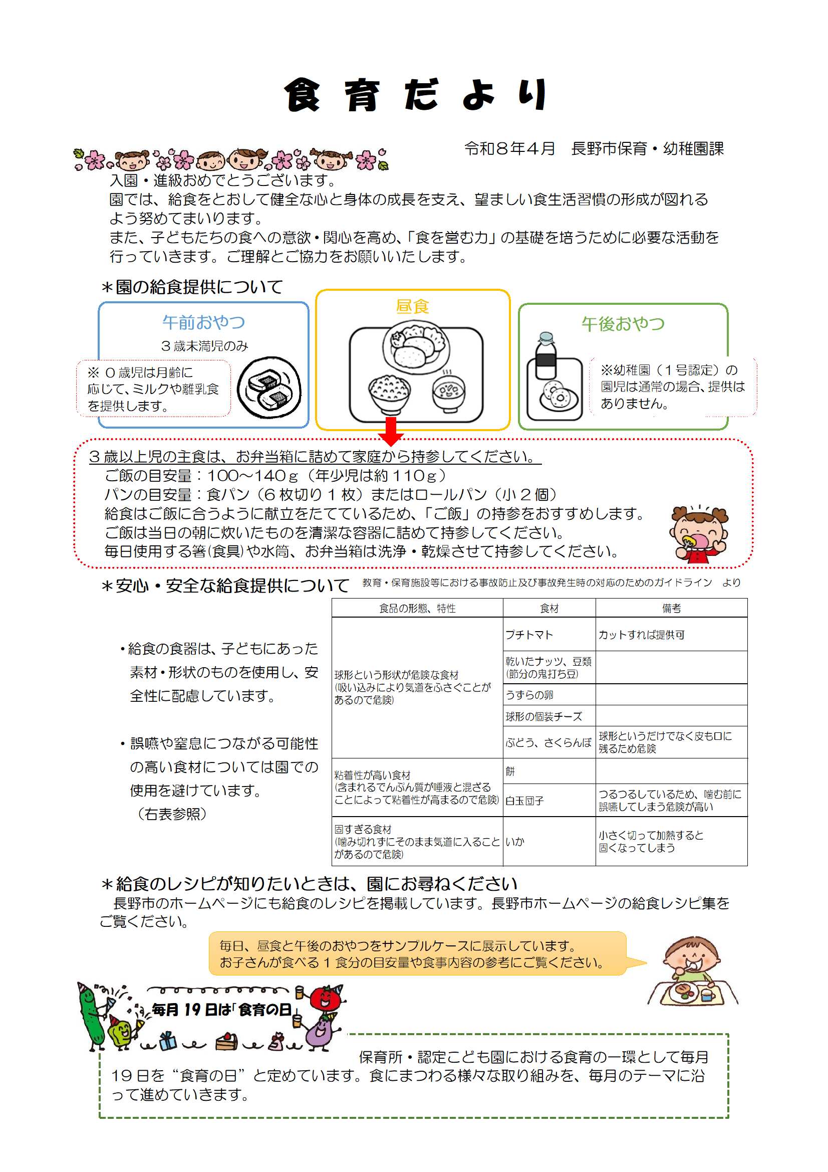 3歳未満児の主食のごはんは、園で用意しています。3歳以上児は、家から主食(ごはんまたはパン)をお持ちいただきます。