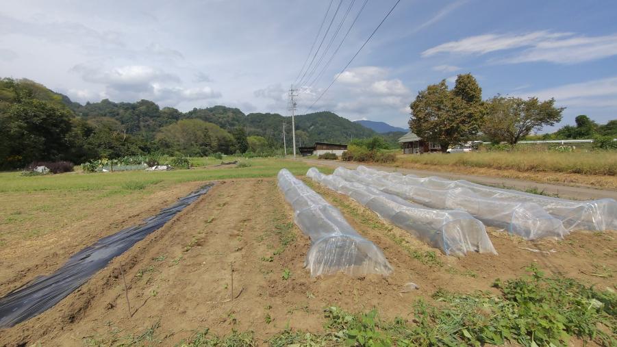 市民農園はトイレ付きの休憩棟、かん水施設、駐車場を完備しており、貸出用の農具もございます。