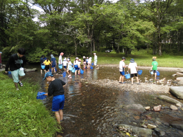 戸隠キャンプ場のさかさ川で、川の中の生き物をみつけました。