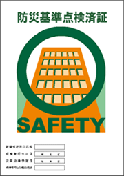 防災対象物を、「防災対象物点検資格者」が点検を行い、その点検結果がすべて点検基準に適合していると認められた場合には、左の「防災基準点検済証」を表示することができます。